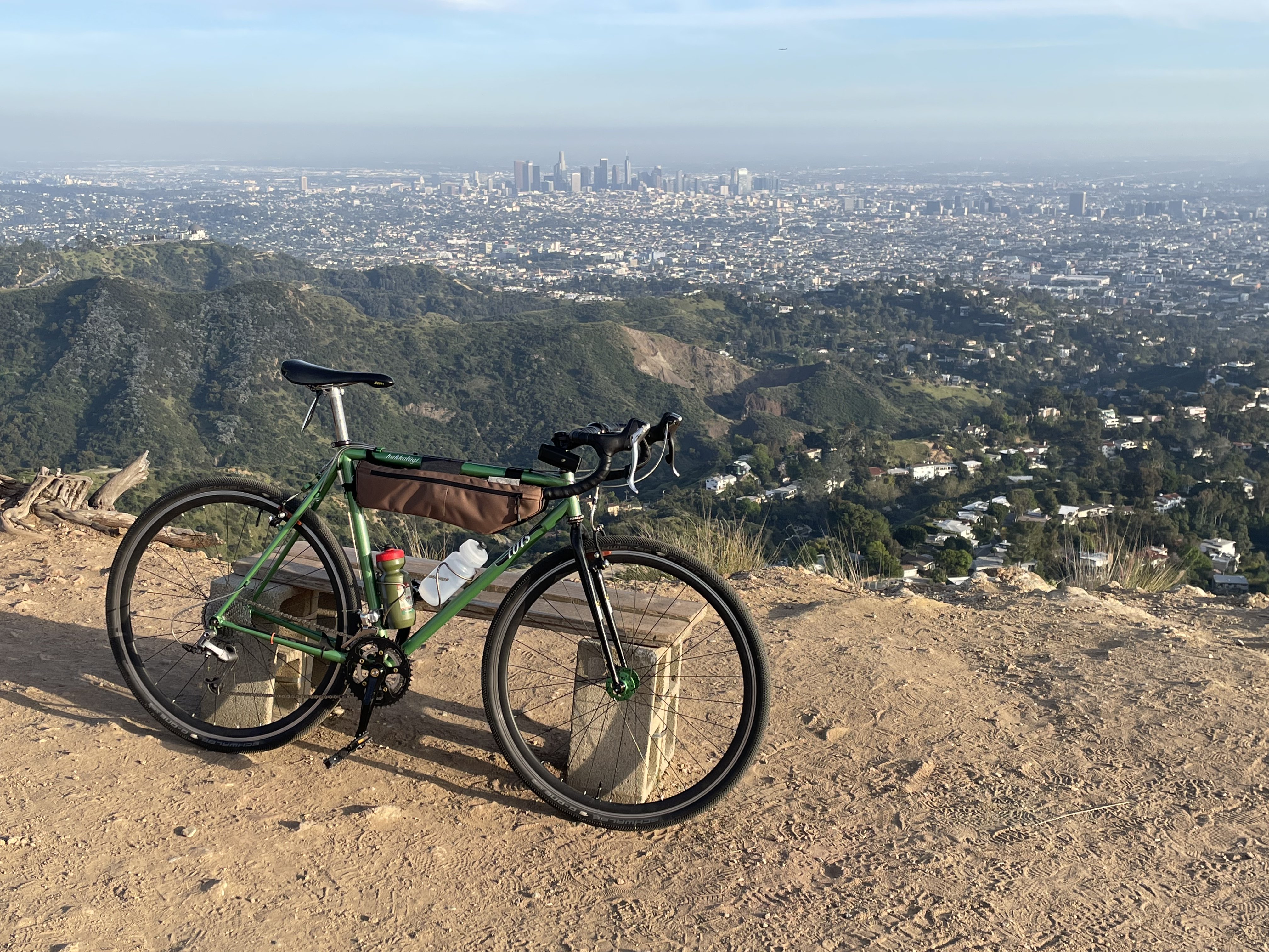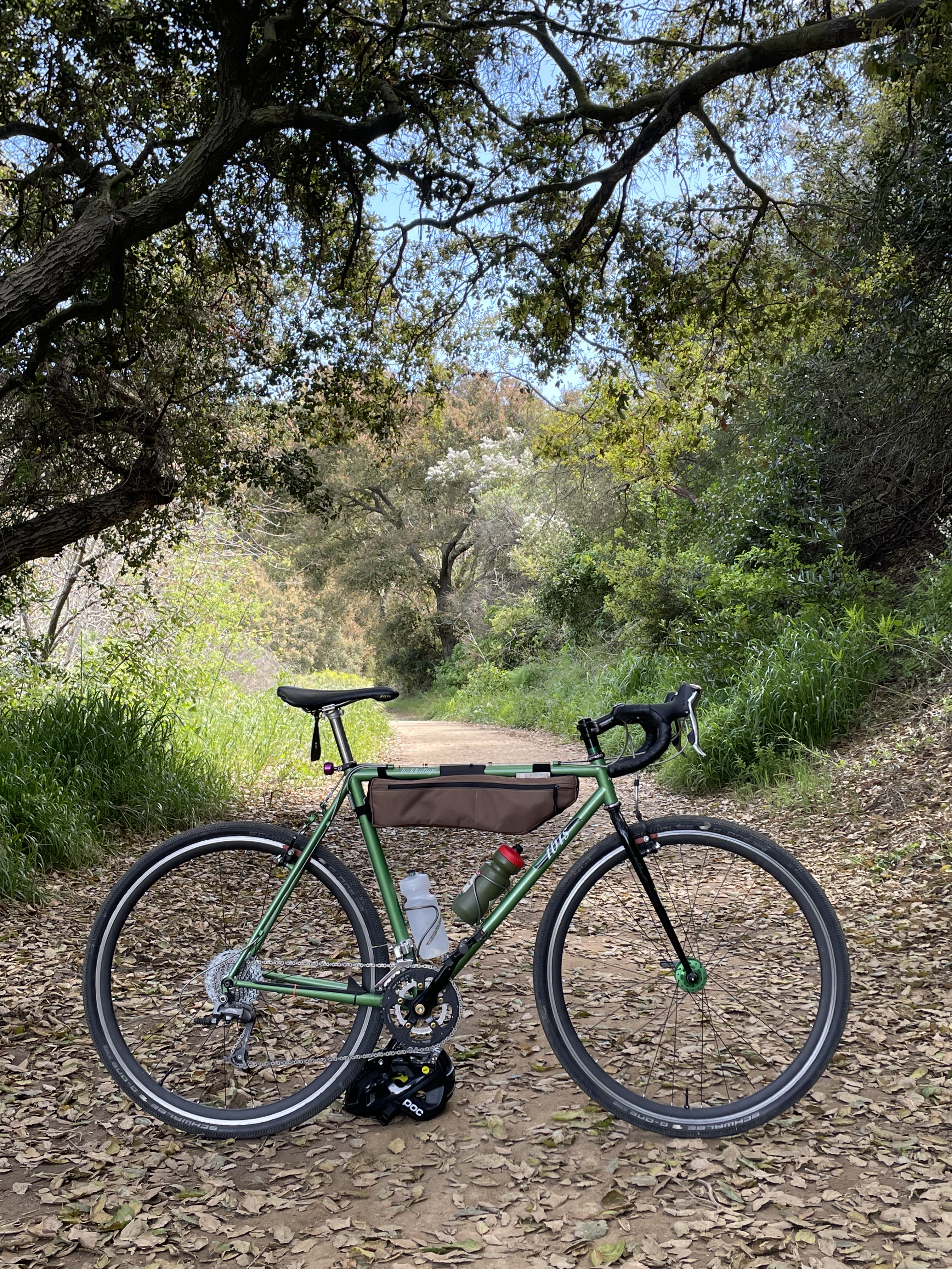 My favorite bike, it can tackle pretty much anything I encounter on a regular LA ride. Triple butted steel, tubeless tires, and 28 spoke wheels converge into a very plush ride - plus its light (frame & fork < 4lbs!) and can fit 700 x 42s! My only complaint is the lack of mounting points on this particular model, but I plan on getting some brazed on in the future.