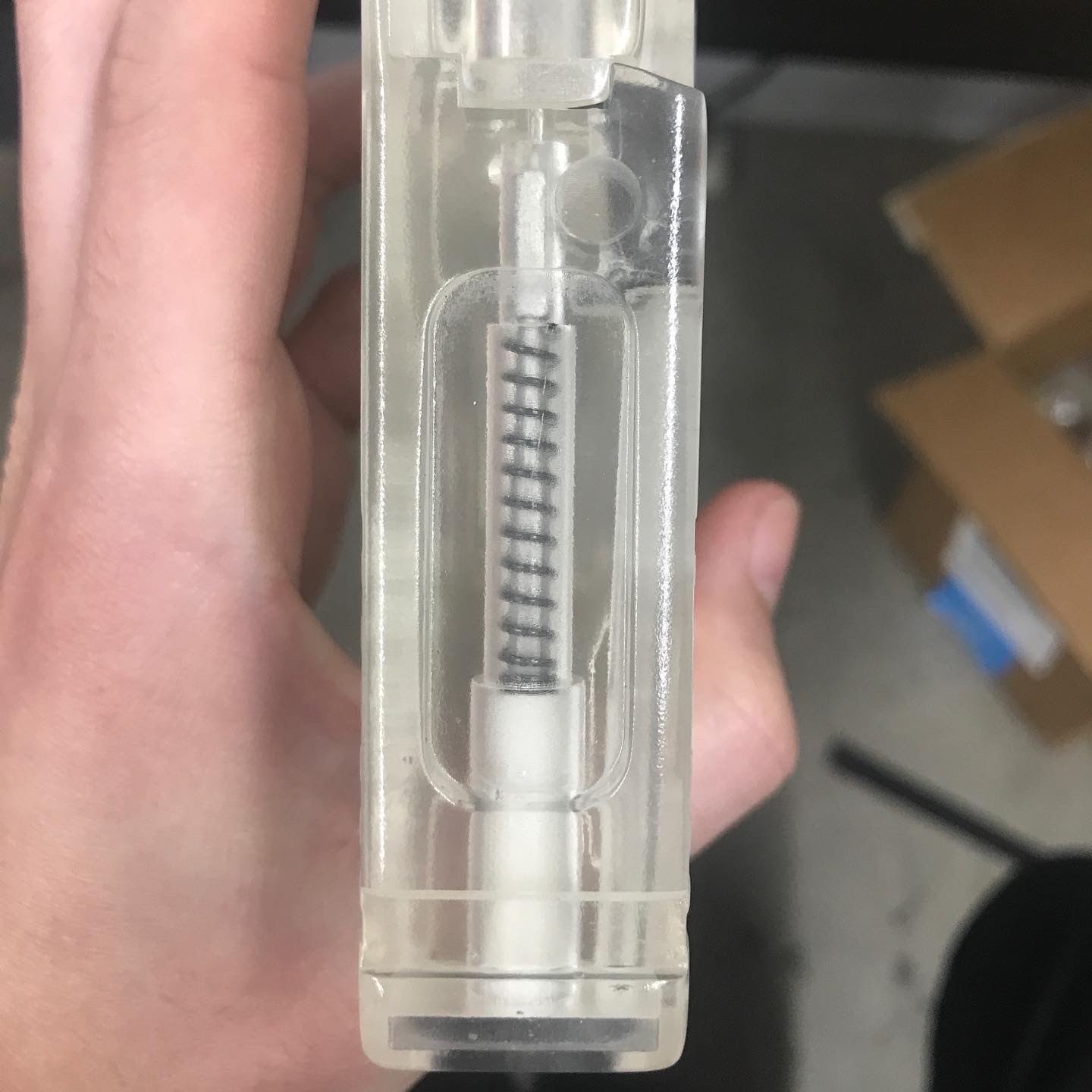 The project was successful with a nice 3-part mold, but ultimately never implemented, as it would have required re-certification of multiple processes that the company was unwilling to entertain at the time.