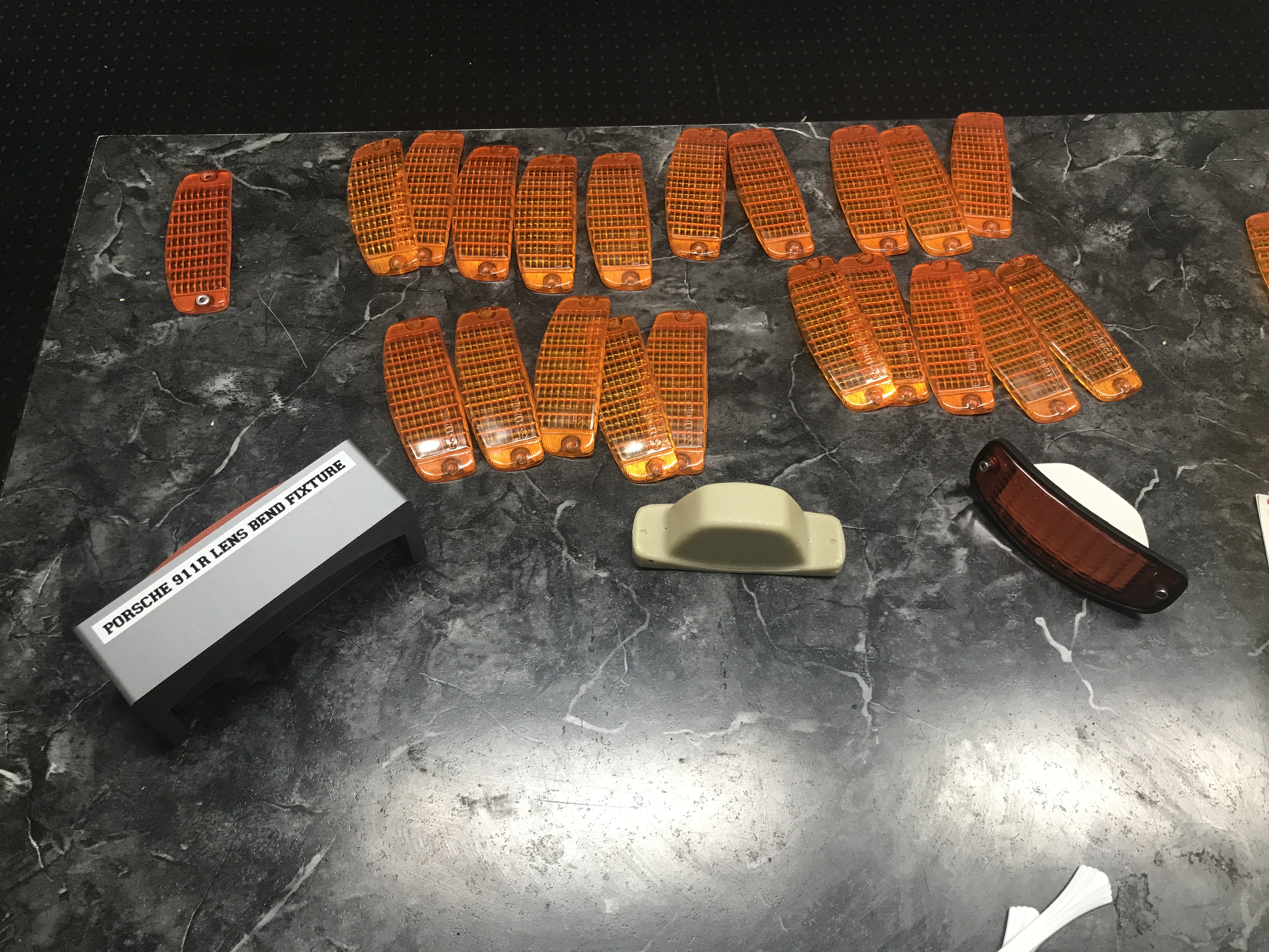 Cast reproductions of 1967 Porsche 911R lenses, seals, bending jigs & bucks for vacuum-formed lens housings