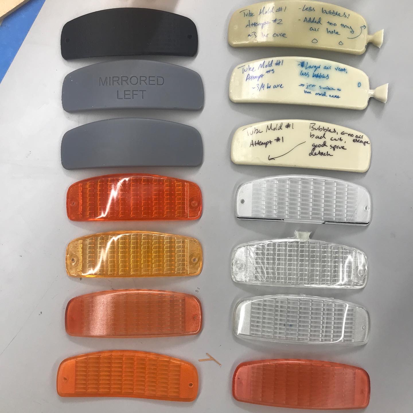 Commisioned by a local Porsche shop, this project is how and why I learned to cast and design molds. Luckily, I was working as a lab manager at the time, and had all the tools lying around in different corners of the factory. I had planned on SLA-printing all 25 lenses until I encountered the upper limits of photopolymer resin transparency. Scroll through the photos to see the many trials and errors of the process.