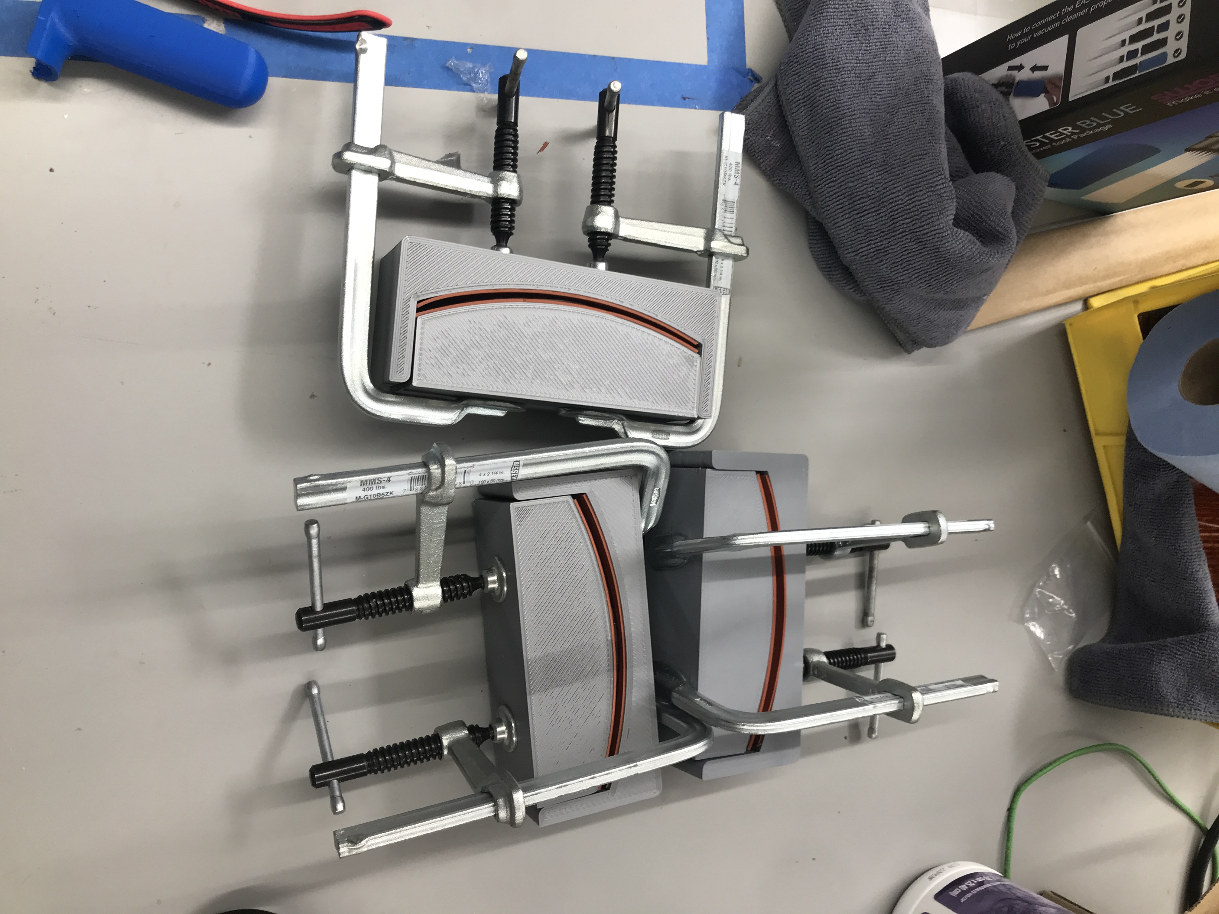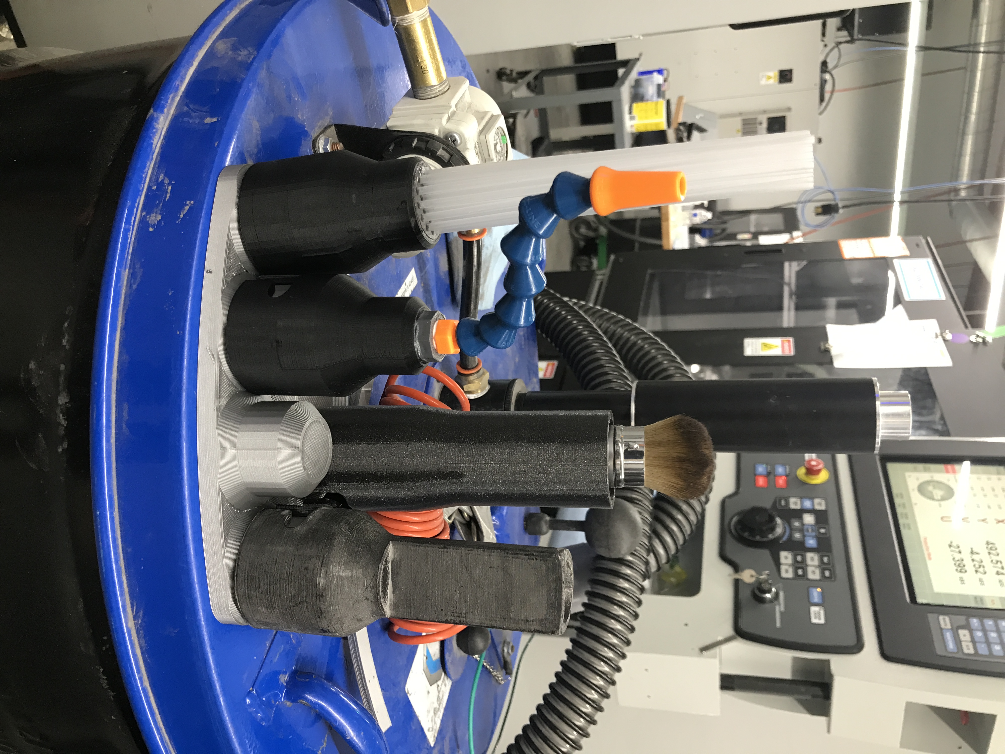 Fittings for cleaning excess stainless-steel powder from printer surfaces & cakes. Developed with the help of printer technicians, each fitting is designed to make their multi-step process of part production easier. Second photo shows what they were using beforehand.