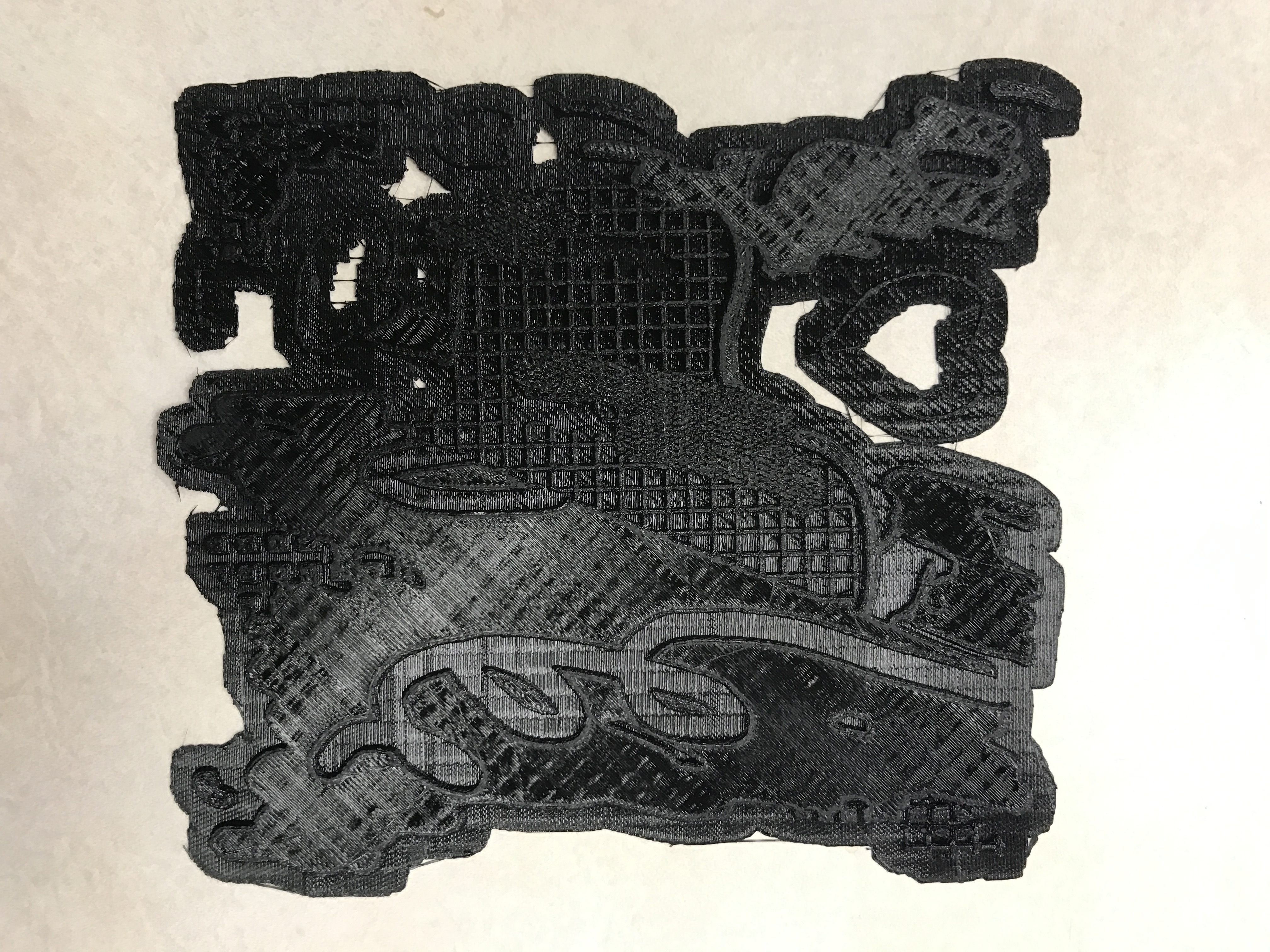 3D printed tactile map of Laura Owen's Untitled, 2013, designed to accompany a verbal description of the artwork. Print-quality is terrible, but it was my very first print (and first time using Blender), and opened my mind to the possibilities.