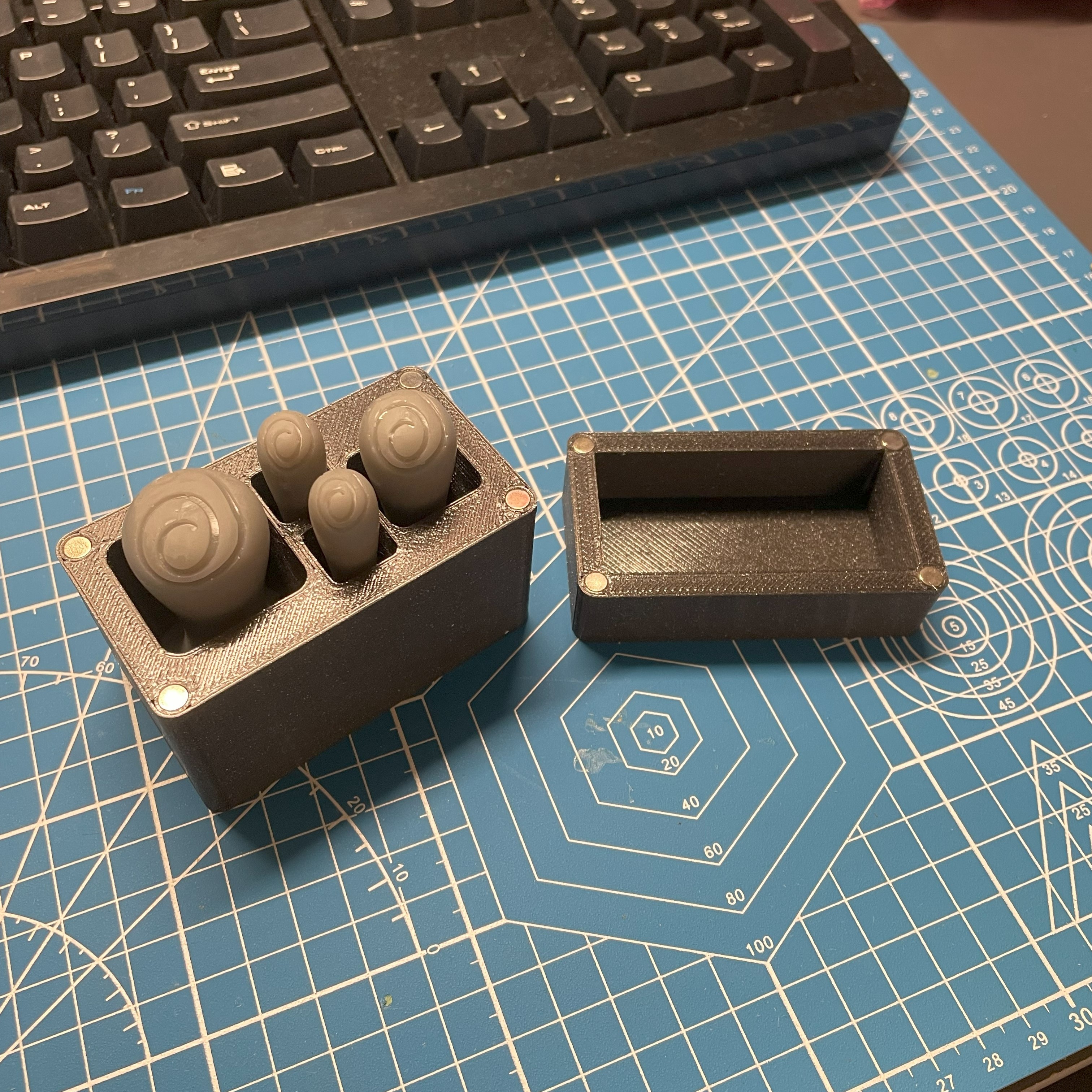 FDM & SLA printed injection mold for metal-powder printer spindle vacuums.